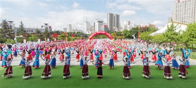 本报讯(记者 徐顺凯 摄影报道)9月15日上午,中心广场、大通县文化广场、湟源县文化广场、湟中区文化广场人潮涌动,气氛热烈,由省舞蹈家协会、市文化旅游广电局主办,市文化馆承办,五区二县文化馆协办的“庆国庆 迎中秋”第二届“我和我的祖国”千人(百人)广场舞展演暨“绿水青山 幸福西宁”群众广场舞大赛活动分别在一个主会场三个分会场同步举行。