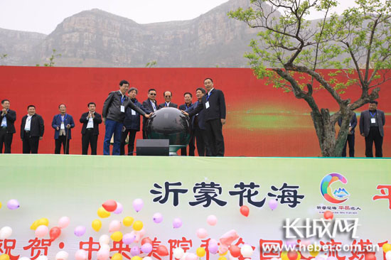 4月8日上午,由山东省互联网传媒集团主办,山东省摄影家协会、山东省自行车运动协会、山东省旅游行业协会旅行社分会协办,平邑县九间棚旅游公司、平邑县观音山旅游开发公司联合承办的“沂蒙花海·平邑近人”中央美院和全国主流媒体平邑写生采风活动在平邑县郑城镇观音山旅游区启动。