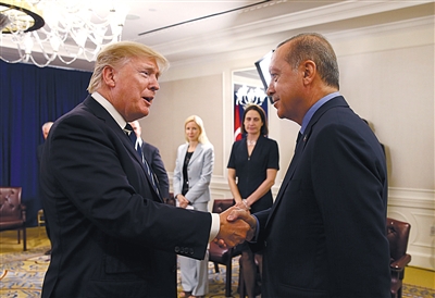 当地时间9月21日,美国纽约,联合国大会期间,美国总统特朗普与土耳其总统埃尔多安会面。图/视觉中国