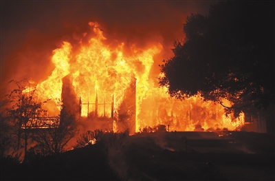 当地时间2017年10月10日,美国加州北部的大火继续延烧,目前过火面积已经超过4.6万公顷。目前已造成至少17人死亡、180人失踪。据当地媒体10日报道,这场森林大火还摧毁了2000多栋医院、学校、民宅等建筑,超过3000名当地居民被紧急转移,他们中许多人的房屋被彻底烧毁。目前加州的纳帕、索诺马和门多西诺等县的火势还没有完全被控制,受灾较严重的几个县已宣布关闭部分学校。