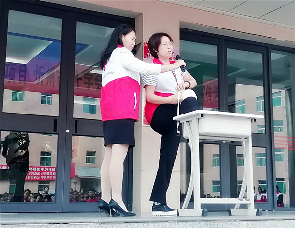 整个过程气氛非常热烈,杨秘书长一边讲解一边示范,学生们通过仔细听讲、简单模仿学的有模有样。对于同学们而言,他们学到了自救知识和能力,这是一次快乐且难忘的体验式课堂。
