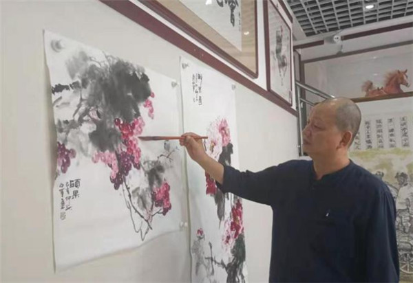 北京荣宝斋专职画家刘亚军现场作画。