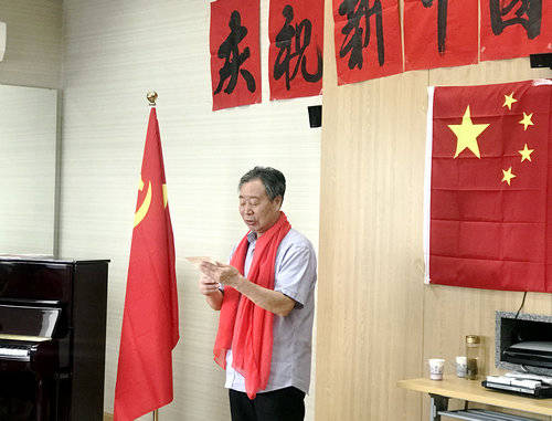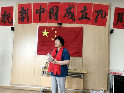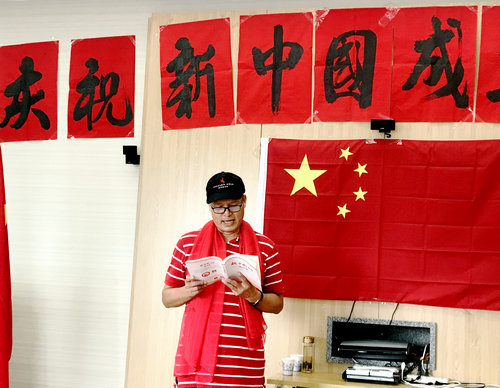 本次联欢会由第十党支部书记耿秀刚同志主持。其它老同志们以诗歌朗诵、歌曲演唱、乐器演奏等不同形式表达对祖国的热爱和赞美之情,其中6位与共和国同龄的老同志与祖国共庆生日。