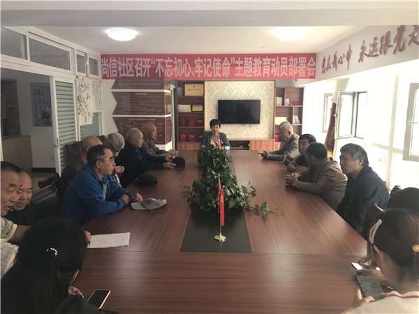 中国公益记录者在线河北讯(公益记录者 王金玲)9月19日上午,尚信社区党总支开展“不忘初心、牢记使命”党员主题教育动员部署会,由尚信社区党总支书记王金玲在会上传达会议精神,为中华人民共和国成立70周年庆生,社区机关全体党员及非公组织党员代表共30余人参加了此次活动。