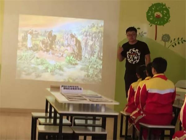 扶轮小学李恺际老师首先为大家带来真爱梦想课程理财 模块“钱是什么”第二课时《原始社会》,孩子们在李老师的引领下,积极参与到原始社会末期的以物易物、物物交换的体验活动中,了解了货币的起源、概念和意义,学习了理财知识,开启了财富梦想。