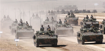 昨日,在朱日和训练基地参加实战化训练的1.2万名官兵,以战斗的姿态走上阅兵场接受检阅。在党旗、国旗、军旗的庄严引领下,受阅部队按照作战编组,编成9个作战群36个方(梯)队,空地一体受阅。