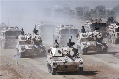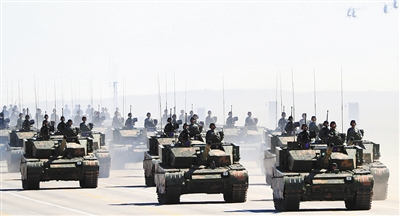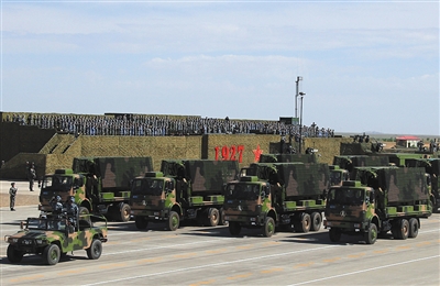 122毫米履带自行榴弹炮、155毫米履带自行加榴炮和300毫米轮式远程火箭炮,3种代表我军先进水平的主要口径火炮,共同组成自行火炮方队。火炮素有“战争之神”美誉。这次受阅的3种型号火炮信息化程度高、火力反应速度快,打击效能成倍提升。