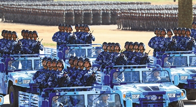 海军陆战队方队官兵,全副武装、斗志昂扬地挺立在“猛士”车上“踏浪”而来。这是本次阅兵中唯一有女兵参阅的方队。海军陆战队女队员能熟练使用各种枪支,精于徒手格斗和冷兵器搏杀,还掌握跳伞、潜水、攀登等各项技能。