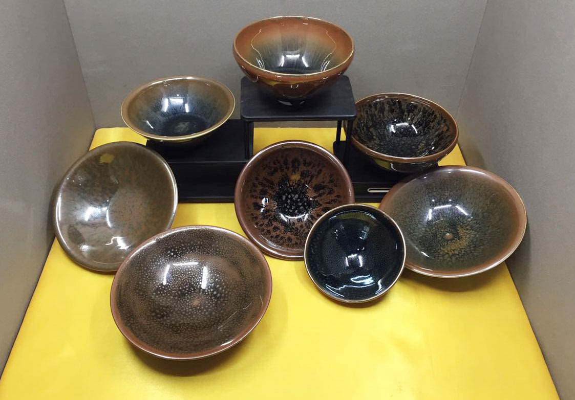 王淑昌在实践中发现,定窑瓷器的窑变与南方建盏的窑变有着本质的不同,建盏瓷器的胎体颜色深,含铁元素较高,胎中的铁成分在高温下向外扩散,容易与釉相结合,发生结晶釉的窑变。而定窑瓷器的胎体是白色的,所含铁元素的量特别少,只能靠釉中的所含的铁元素发生变化,进而形成结晶,故而定瓷的窑变控制难度要大很多。得到件完美的窑变定窑瓷器并不容易,需要经过一系列繁琐的工序:首先,坯体要低温素烧,经过打磨、水洗、晾干,然后才可以施釉。施釉时,对于釉层的薄厚度有着严格的技术要求。还要进行二次施釉,釉层的厚度要把握在1.5mm,釉层过薄就形不成油滴了,釉层过厚,经高温流动后容易粘底,成为废品。最关键的一步是烧成,对温度的掌控、升温曲线、降温速度等要求十分苛刻,有的品种需要两次甚至三次才能烧制出满意的效果。