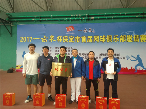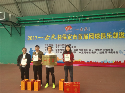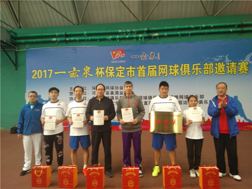 为期两天的,2017“一亩泉杯”保定市首届网球俱乐部邀请赛今天(4月9日)在保定市体校圆满落幕。经过两天的激烈比赛,产生出了第一名至第八名,来自保定市区的8支代表队各有名次,他们还获得了奖牌、证书和奖品,本次比赛得到了河北一亩泉酒业集团的大力支持。